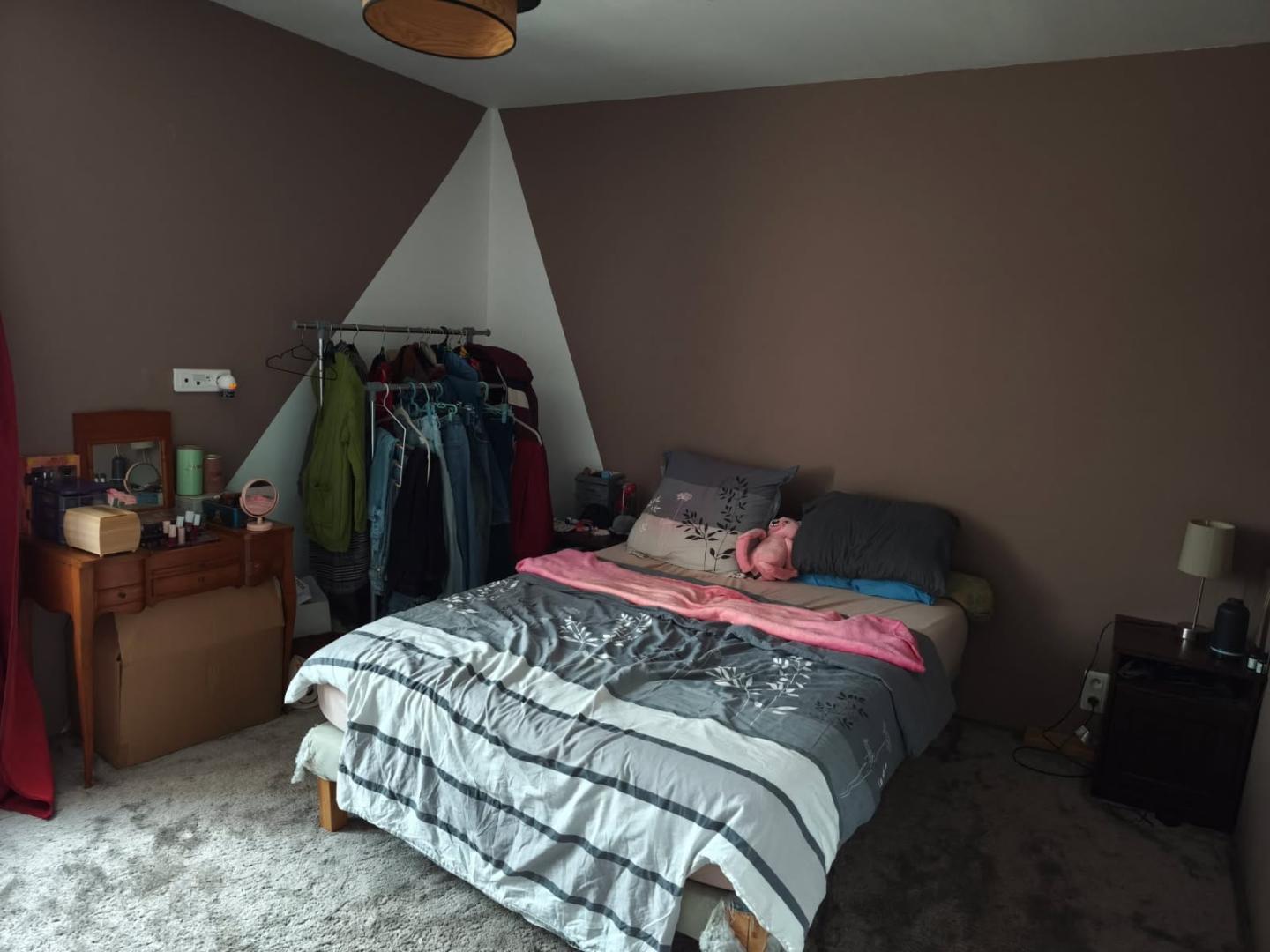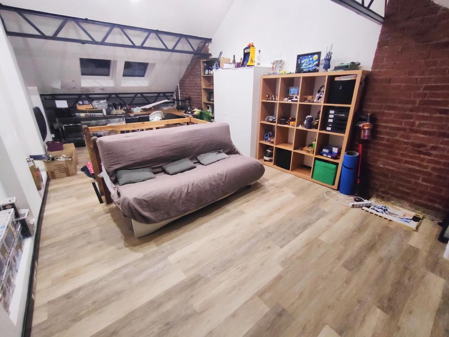 Les combles desservent une grande chambre, paquetée avec 4 fenêtres de toit : une belle surface pour réaliser deux chambres distinctes.